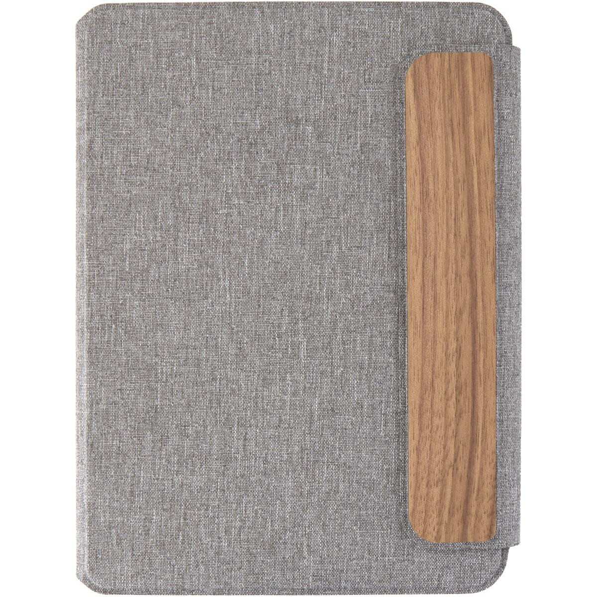 Portfolio Andean velikosti A5 je částečně vyrobeno z recyklovaného polyesteru s certifikací RCS, což nabízí udržitelnější alternativu snížením závislosti na primárních materiálech. Mají elegantní šedou pevnou vazbu se zaoblenými rohy a precizně svařovanou technologii a jsou zajištěny magnetickým uzávěrem, který je zvýrazněn detailem z ořechového dřeva, což dodává moderní a sofistikovaný nádech. Uvnitř najdete odnímatelný zápisník s měkkou vazbou a 64 linkovanými listy papíru krémové barvy s gramáží 80 g/m², který je vyroben ze zodpovědných zdrojů. Dodáváno v obalu z kraftového papíru.