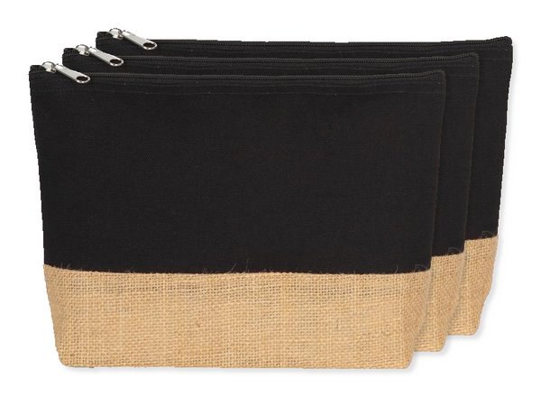 Cotton canvas pouch with constrast laminated natural jute base.