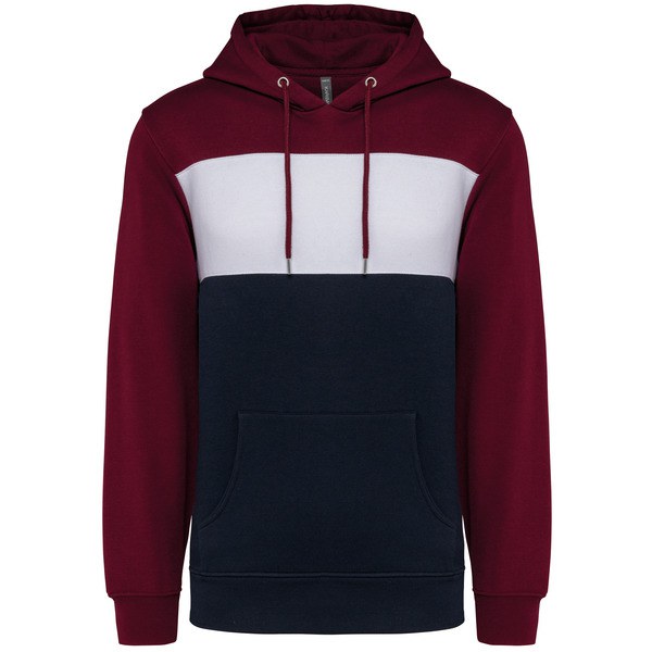 Tricolour hooded sweatshirt with central white stripe on all colours.