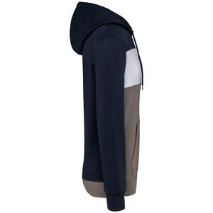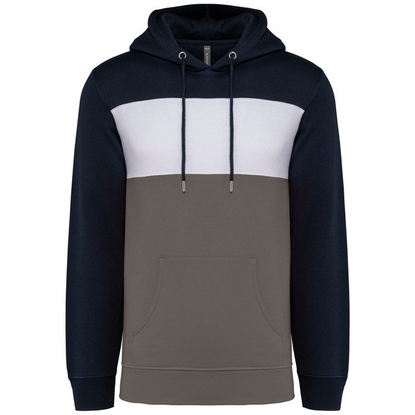 Tricolour hooded sweatshirt with central white stripe on all colours.