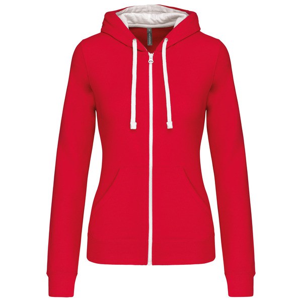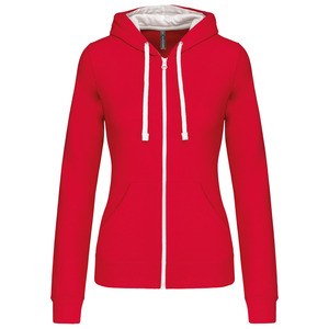 Kariban K467 - Red / White - Ladies’ contrast hooded full zip sweatshirt