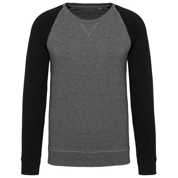 Kariban K491 - Grey Heather/ Black - Men's two-tone organic crew neck raglan sleeve sweatshirt