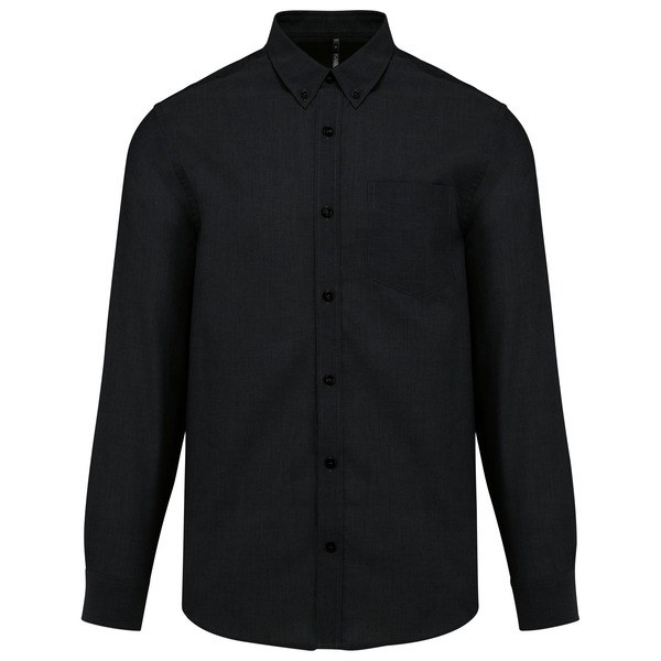 Pánská košile Oxford s dlouhým rukávem ze směsi bavlny a polyesteru, se snadnou údržbou pro profesionální vzhled při každodenním nošení. Tento oděv má klasický propínací límec a funkční kapsu na levé straně hrudi, což z něj činí základní kousek pro firemní uniformy a personál v pohostinství. Tkanina 'Easy Care' snižuje nároky na žehlení a zajišťuje upravený vzhled po celý pracovní den. Díky zadnímu sedlu se dvěma bočními záhyby a tvarovanému lemu nabízí pohodlný střih, který umožňuje přirozený pohyb při zachování elegantní siluety. Ať už ji nosíte bez úprav pro minimalistický vzhled, nebo ji doplníte firemním logem, tato košile nabízí všestrannost potřebnou pro hromadné nákupy. Nastavitelné manžety dodávají sofistikovanost, zatímco dva náhradní knoflíky zaručují dlouhou životnost. Tato košile Oxford je ideální pro velkoobchodní odběratele a je vyrobena tak, aby odolala častému praní bez ztráty tvaru. Je perfektním základem pro branding, nabízí stabilní povrch pro detailní výšivku nebo sítotisk, což z ní dělá nejlepší volbu pro reklamní akce a další prodej.