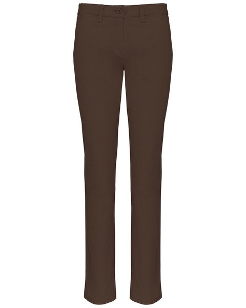 Dámské strečové bavlněné chino kalhoty (245 gsm) poskytující profesionální vzhled s maximálním pohodlím. Tyto kalhoty K741 mají rovný, vypasovaný střih pro štíhlý vzhled. Vyrobeny z vysoce kvalitního bavlněného kepru s 2 % elastanu, nabízejí flexibilitu pro aktivní pracovní prostředí i běžné nošení. Design zahrnuje funkční prvky jako poutka na opasek, dvě boční kapsy, kapsu na mince a dvě vyztužené zadní výpustkové kapsy s prošíváním. Tyto chino kalhoty jsou ideální pro hromadný nákup a skvěle se hodí jako čisté pracovní oděvy nebo prémiový základ pro vlastní branding. Hladký povrch kepru je vysoce kompatibilní s výšivkou a sítotiskem.