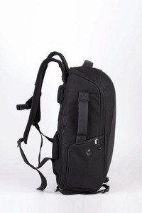 1 side pocket with theft-preventing coiled cable to attach the backpack to table/chair leg.