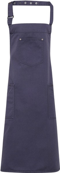 This full bib apron is designed with classic 'chino' style accents for a cool and edgy uniform solution for bars and restaurants.