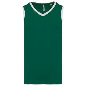 Contrast piping at collar and armholes.