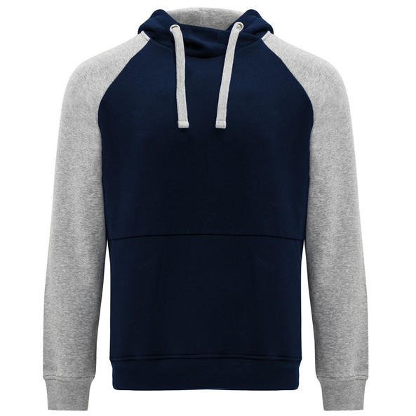 Mikina má překřížený výstřih a kovové kroužky na šňůrky, kontrastní vnitřní kapuci a šňůrky, kontrastní rukáv raglánového stylu a klokaní kapsu.