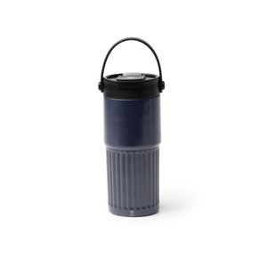 Má dvojité víčko s brčkem a samostatným uzávěrem na jedné straně a výlevku na pití na druhé straně.