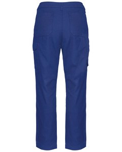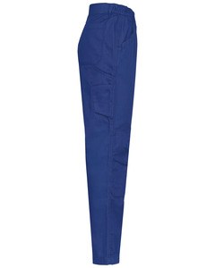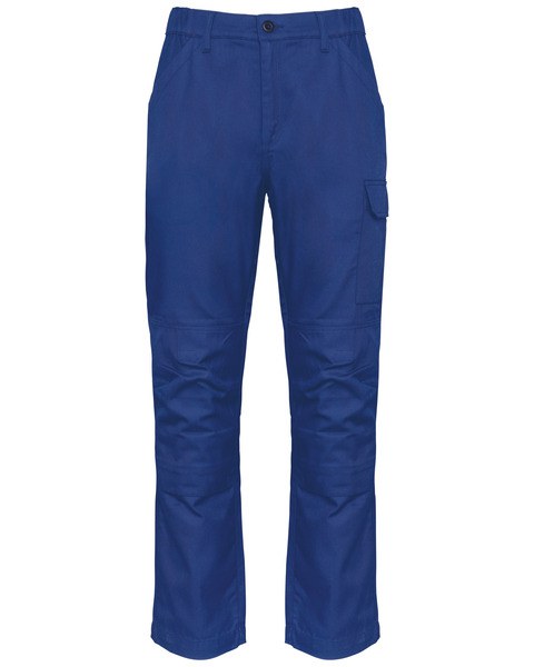 1 pocket with flaps and velcro fastening on the left when worn, 1 double open tool pocket on the right when worn, 2 back patch pockets, 2 knee pad pockets in matching colour with velcro and flap inside to support and adapt the knee pad.